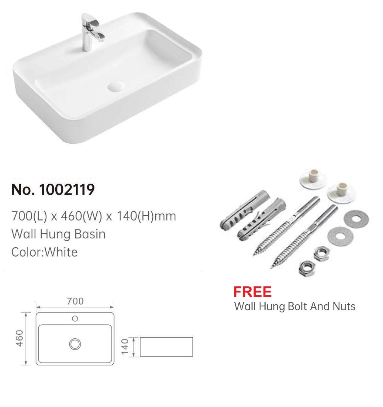 Dimension: L700 x D460 x H140mm