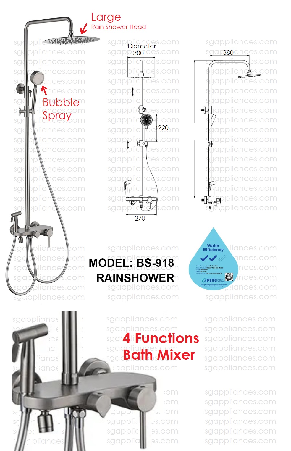 Boshsini New Model Rain Shower Set With 4 Ways Bath Mixer. Matt Finished - Special Offer