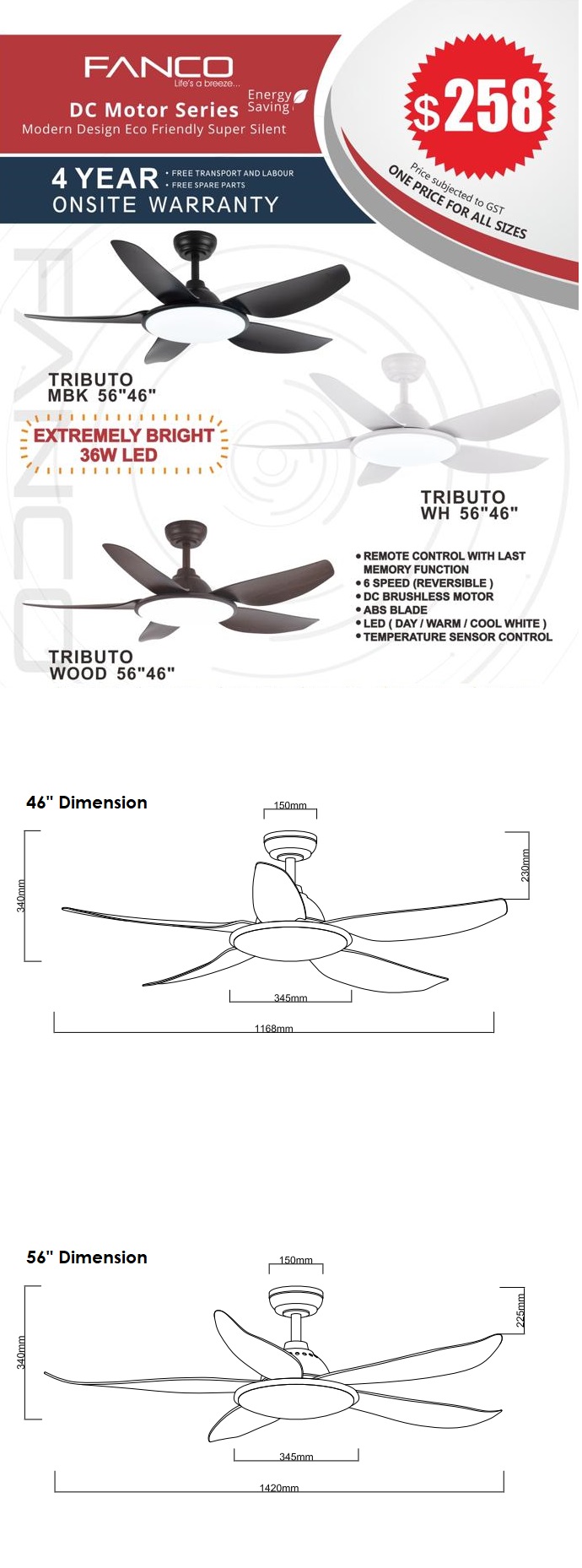 Looking for a ceiling fan with extremely bright LED light? Fanco All-New & Powerful TRIBUTO ceiling fan with Tri-Colors LED is built for Singapore homes. 5 Blades keep the home cool and provide adequate brightness in your home.