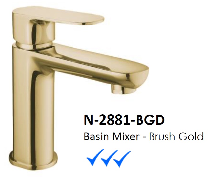 Nobel N-2881-BGD Stylish Bathroom Basin Mixer Tap In Brushed Gold Finished Special Offer. No GST Charge