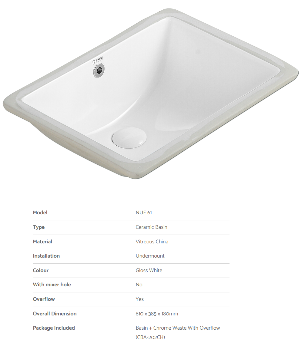 Rubine Ceramic Undermount Basin Best Offer In Town. No GST Charge