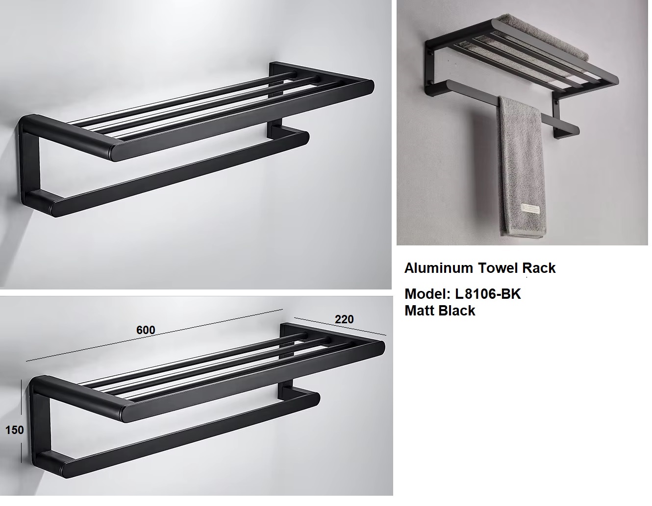 Towel Rack L8106-BK Matt Black