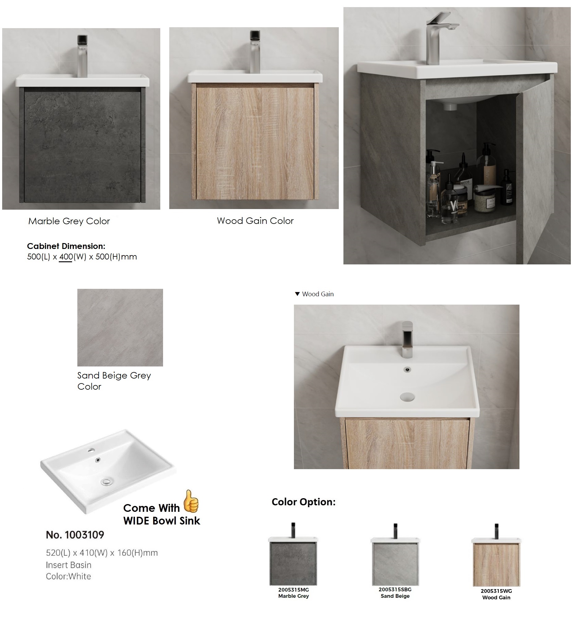 Cabinet colors: See below 3 different colors choice