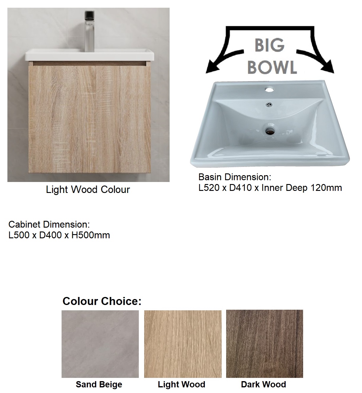 Overall Dimension (Include Basin): L520 x D410 x H540mm