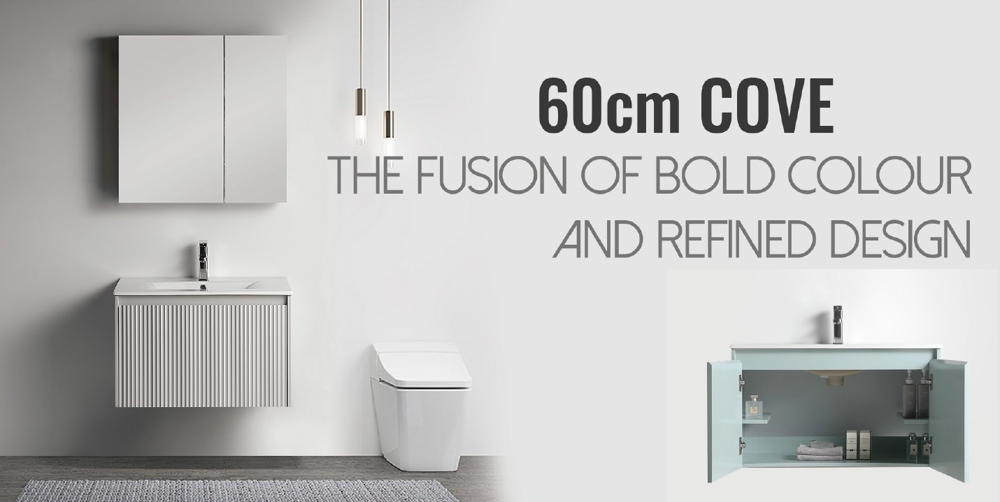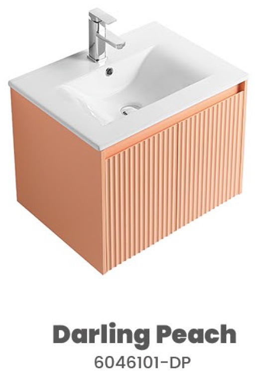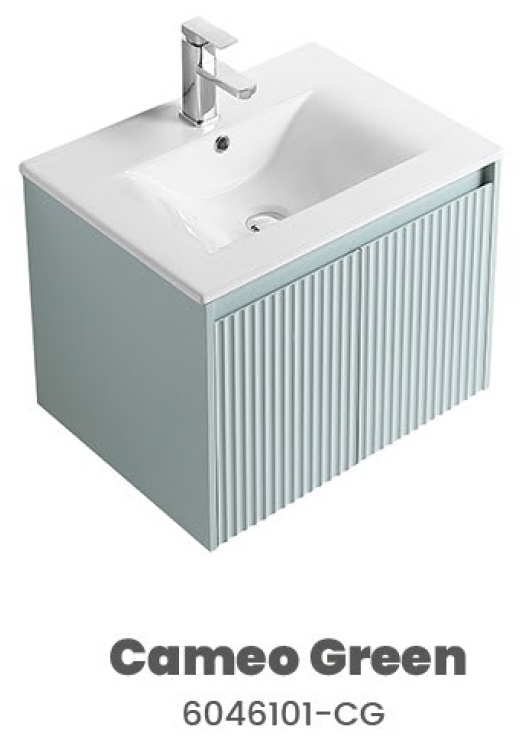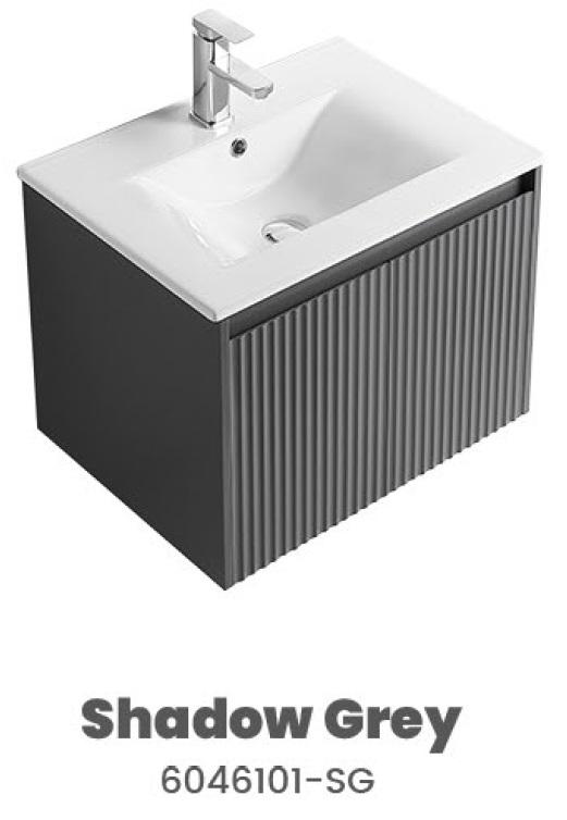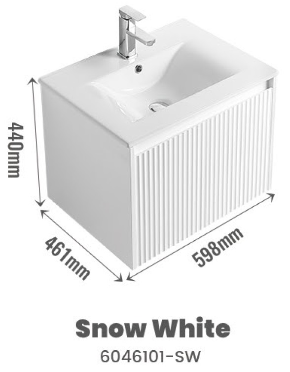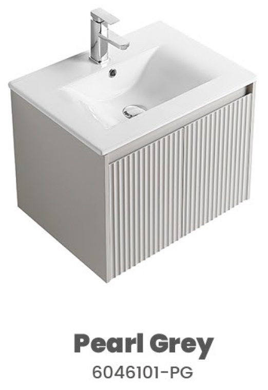 Get the best price in Singapore for this 600mm PVC vanity cabinet with two fluted door design and come with insert basin.