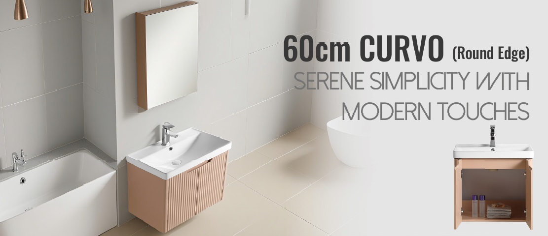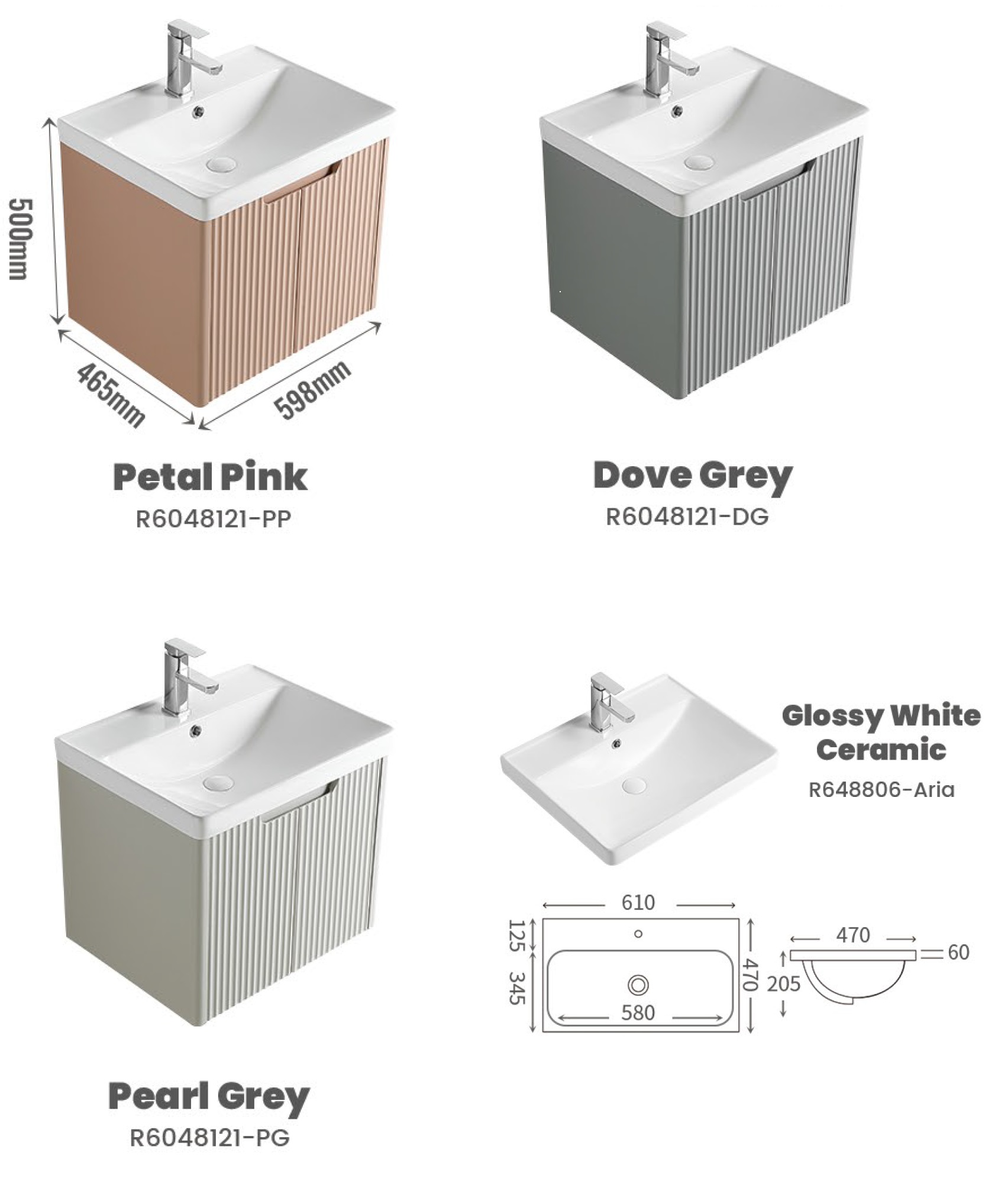 600MM Bathroom PVC Vanity Cabinet With Curve Edge & Beautiful Fluted Door Design