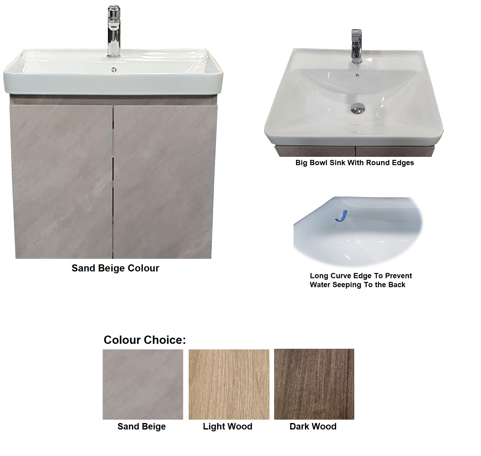 600MM Bathroom PVC Vanity Cabinet With Big Bowl Round Edges Basin
