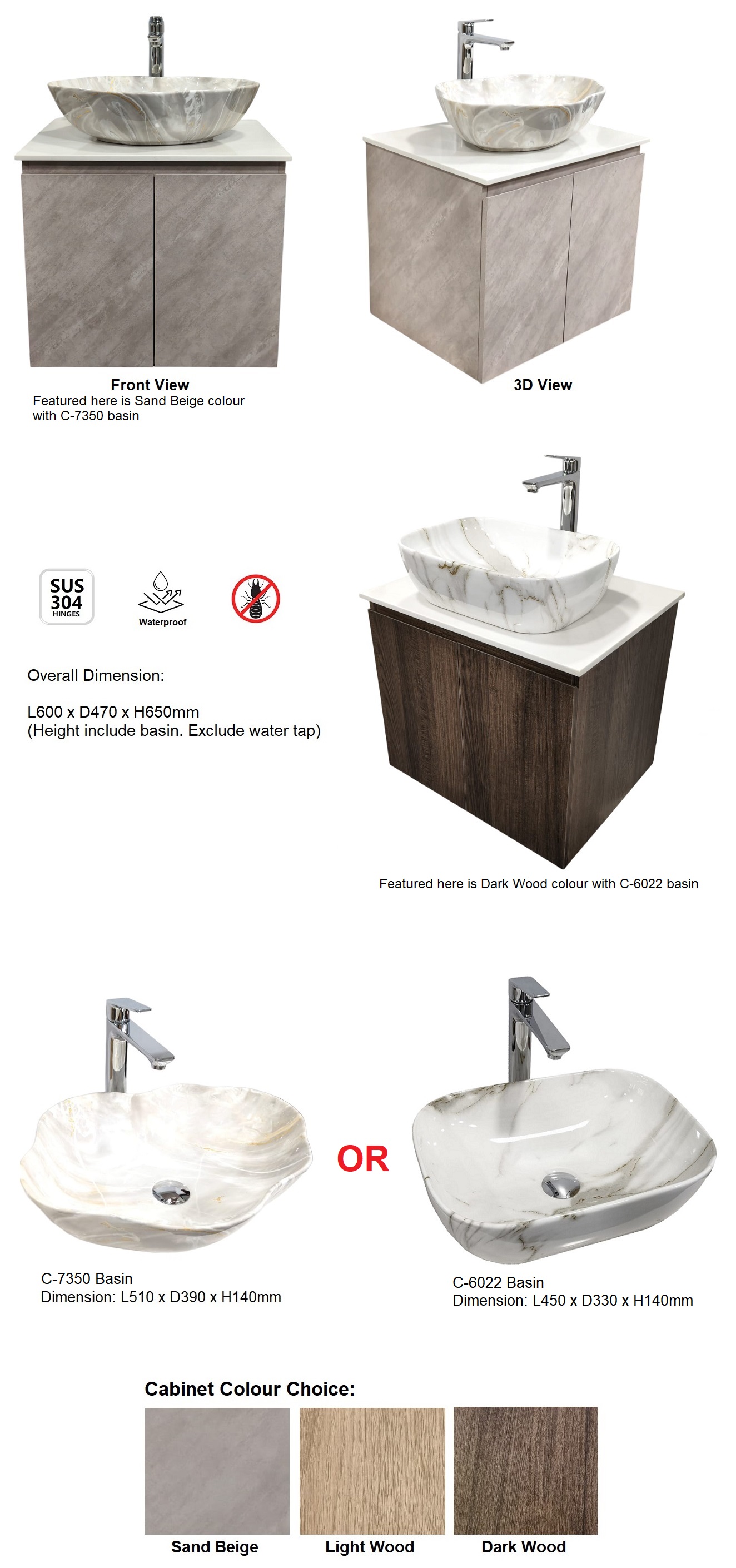Cabinet Colour Textures: Sand Beige / Light Wood / Dark Wood
