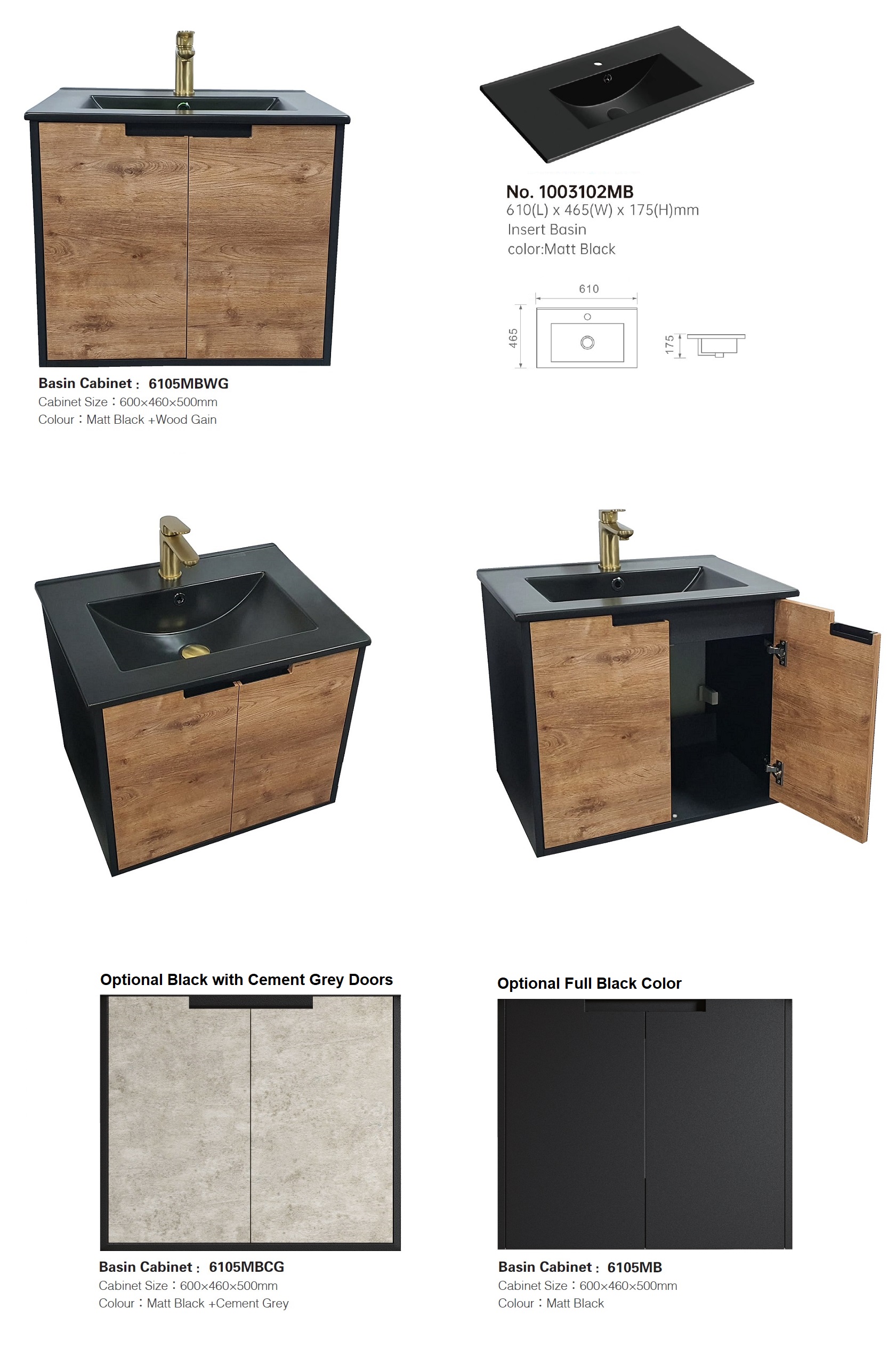 600mm PVC Vanity Cabinet Set D6105 Black Sink