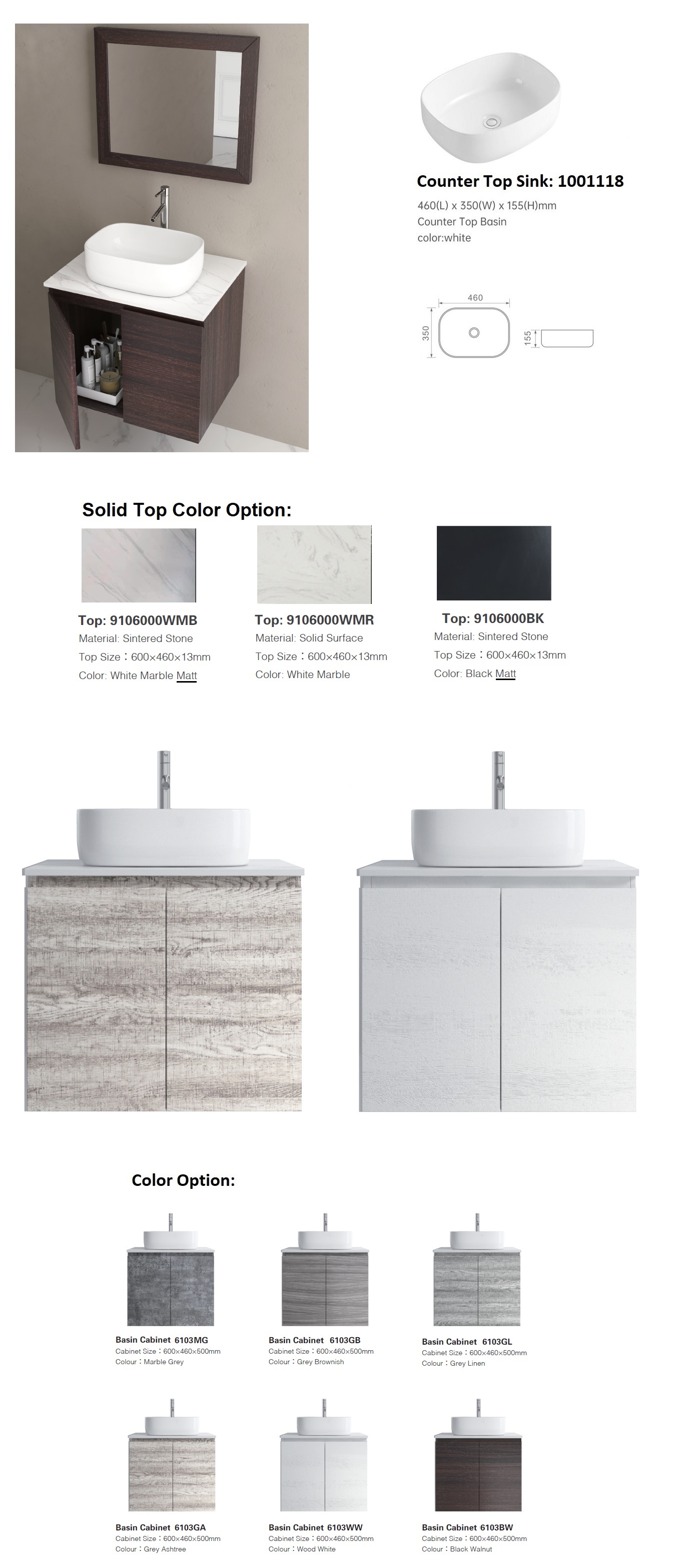 600mm PVC Vanity Cabinet With Counter Top Sink D6103C