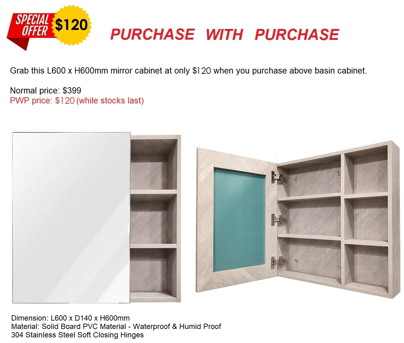 600MM PVC Mirror Cabinet