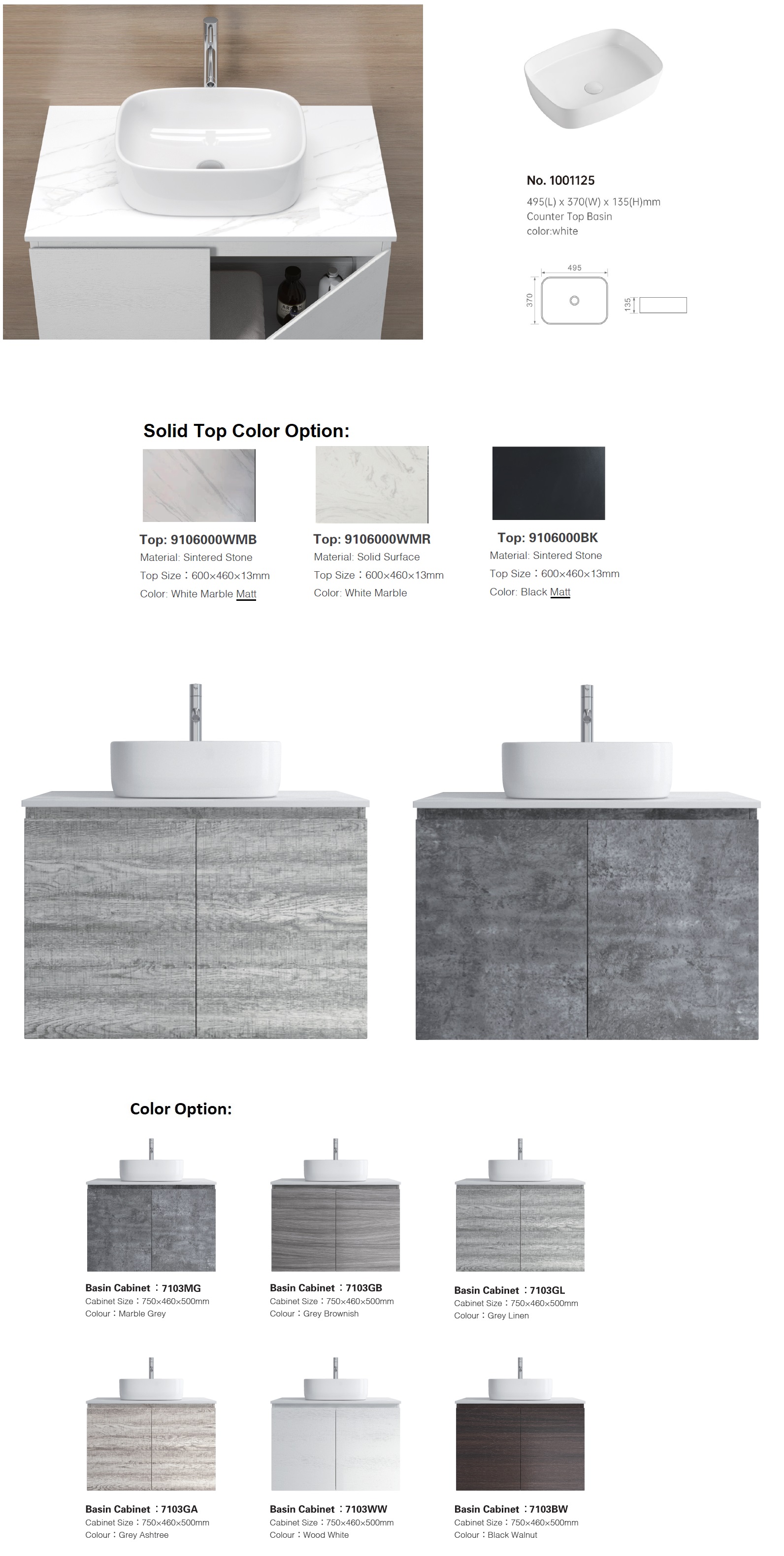 Solid Surface 3 colors to select