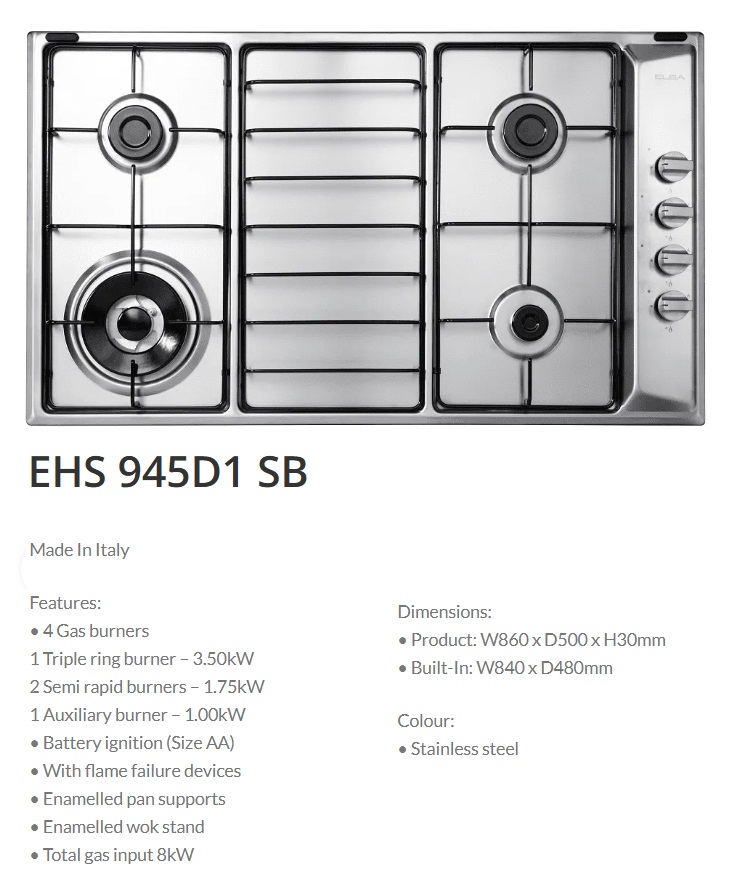 ELBA 4 Burners Gas Cooker Hob EHS 945D1 SB
