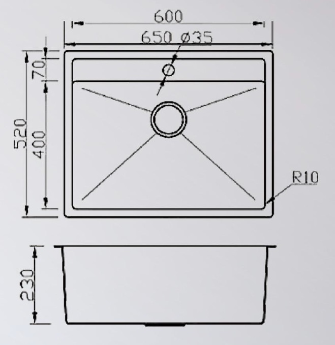 Sink Dimension: L650 x D520 x H230mm