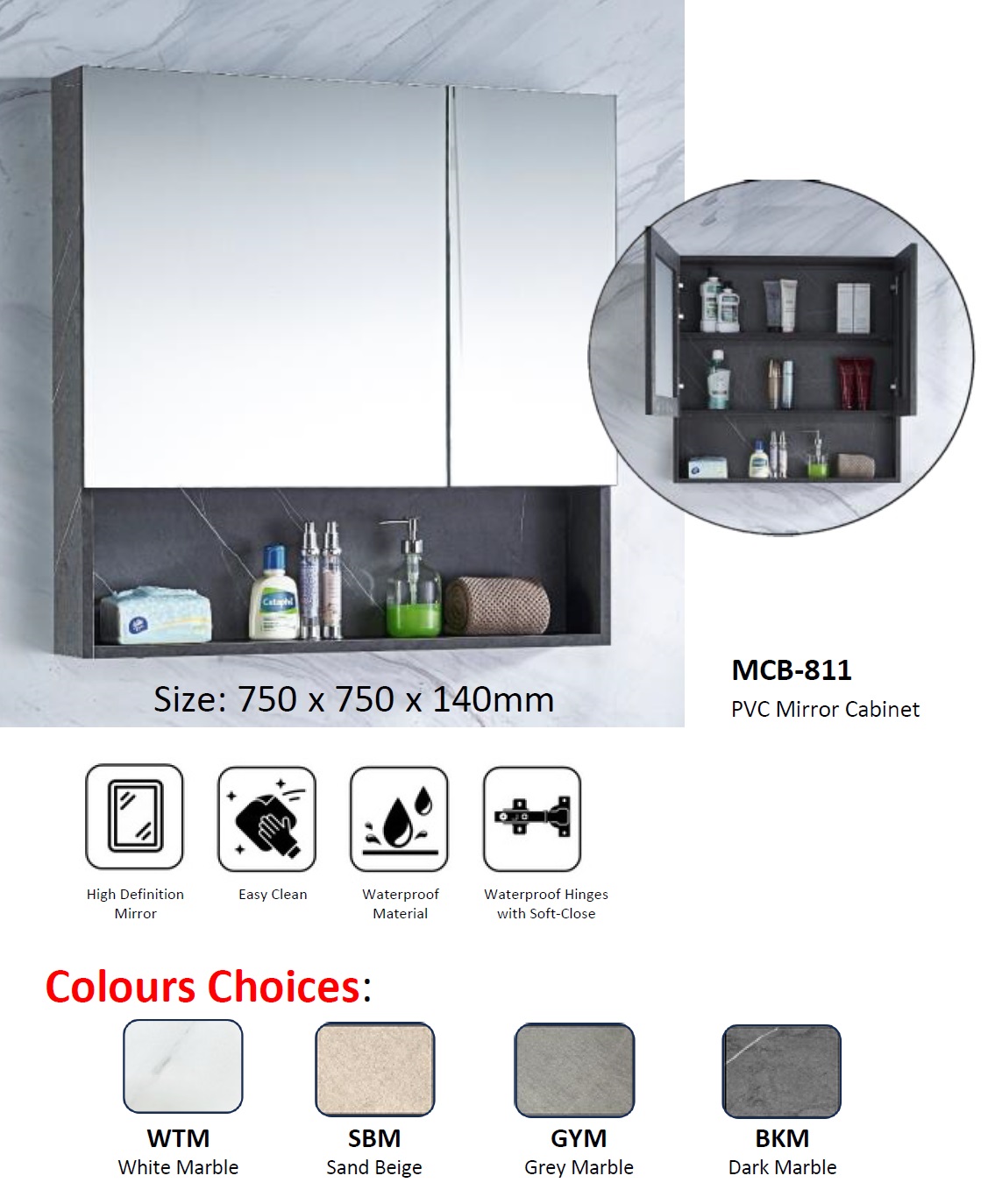 Nobel MCB-811 Two Doors Mirror Cabinet With Open Shelves