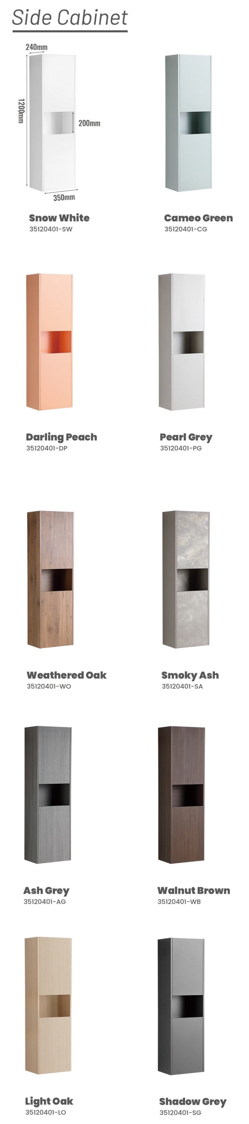 Designed for wall-mounted installation, this side storage cabinet helps free up floor space and allows for easier cleaning.