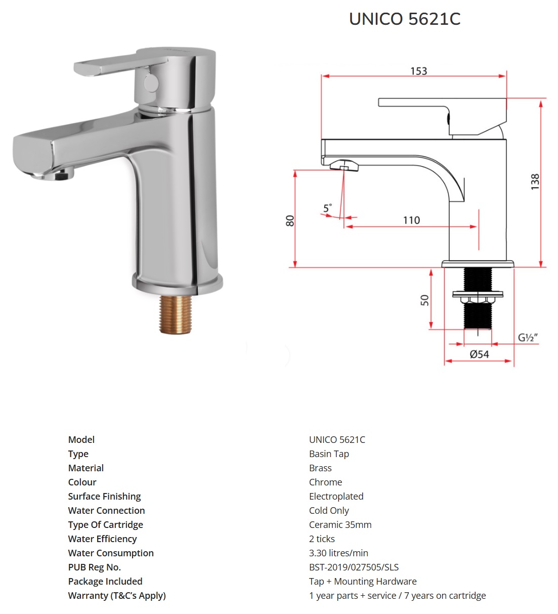 RUBINE Cold Water Basin Tap UNICO 5621C
