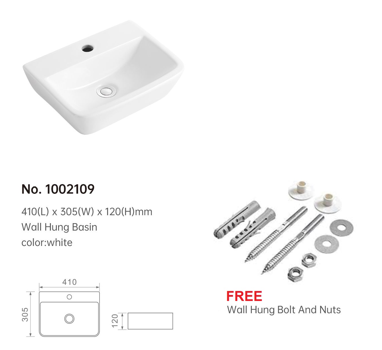 410mm Wall Hung Basin