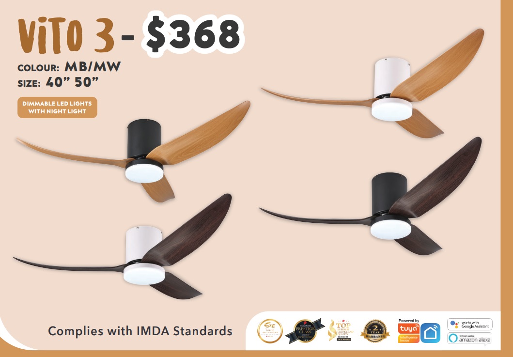 Bestar New Model VITO-3 Ceiling Fan With Smart Wifi Functions. Available in 40 Inch & 50 Inch. Contact Us For Best Offer In Town.