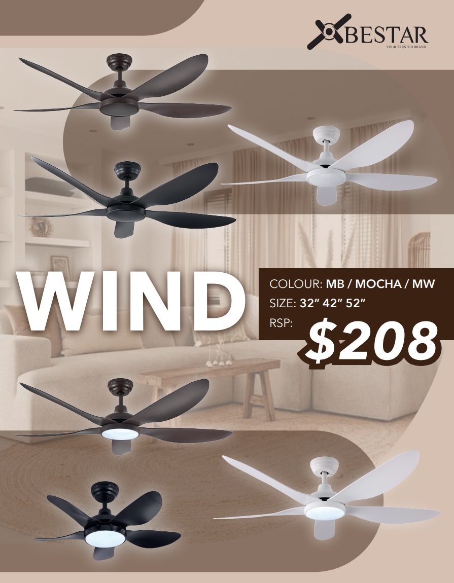 Bestar New Model 5 Blades Ceiling Fan, WIND Available In 32, 42 & 52 Inch - Best Offer in town.