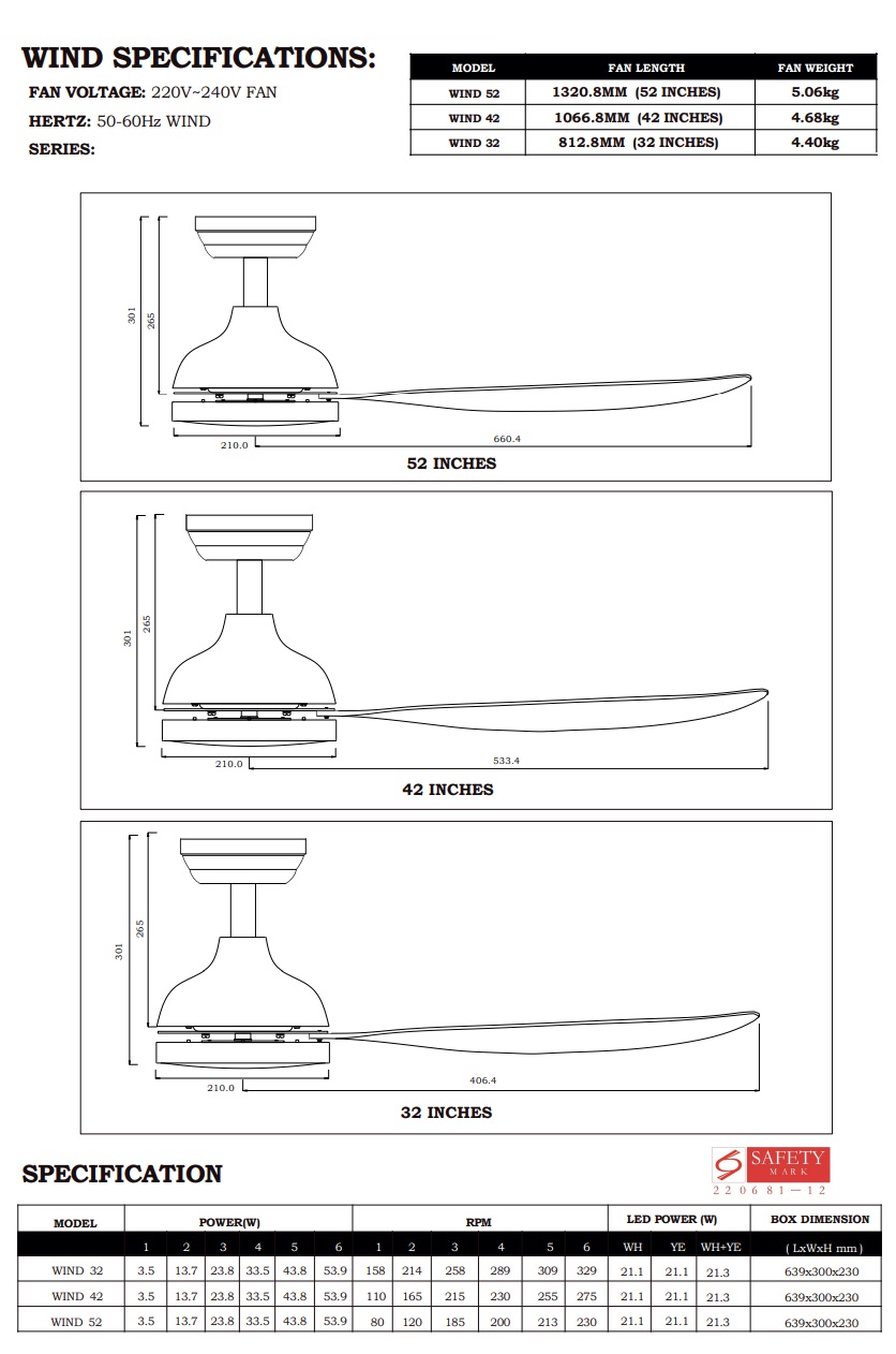 BESTAR WIND 32 Inch - 42 Inch - 52 Inch Ceiling Fan With LED Light