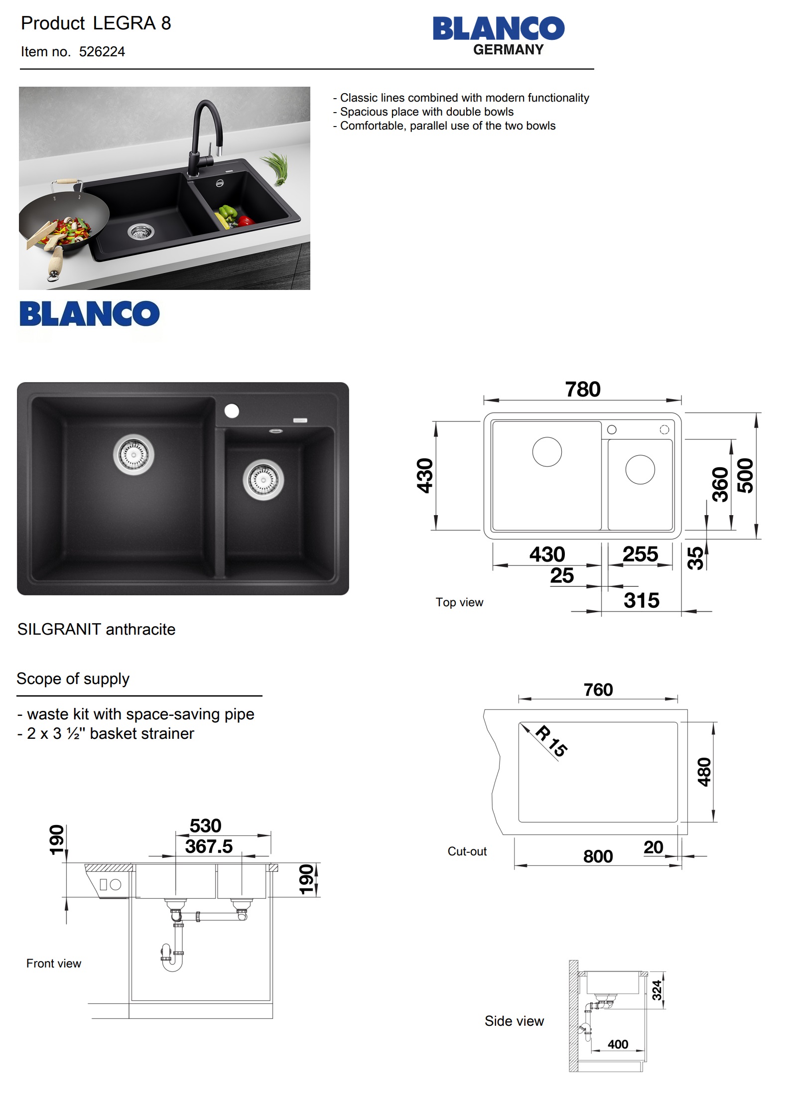 BLANCO LEGRA 8 Top Mount Double Bowls Granite Kitchen Sink. Enquire Our Best Offer.