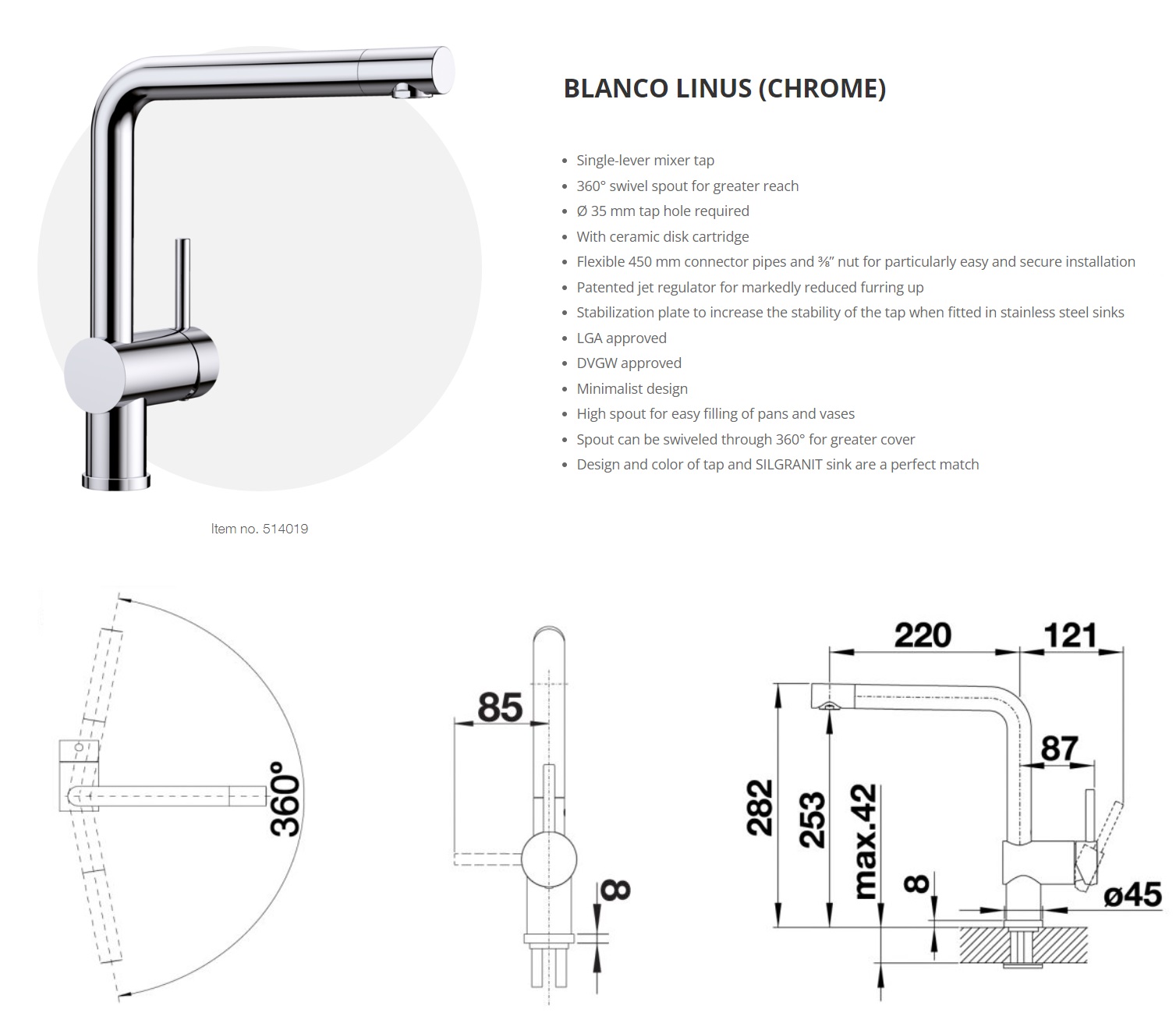 BLANCO LINUS Kitchen Sink Mixer Tap (Chrome) - Offer while stocks last
