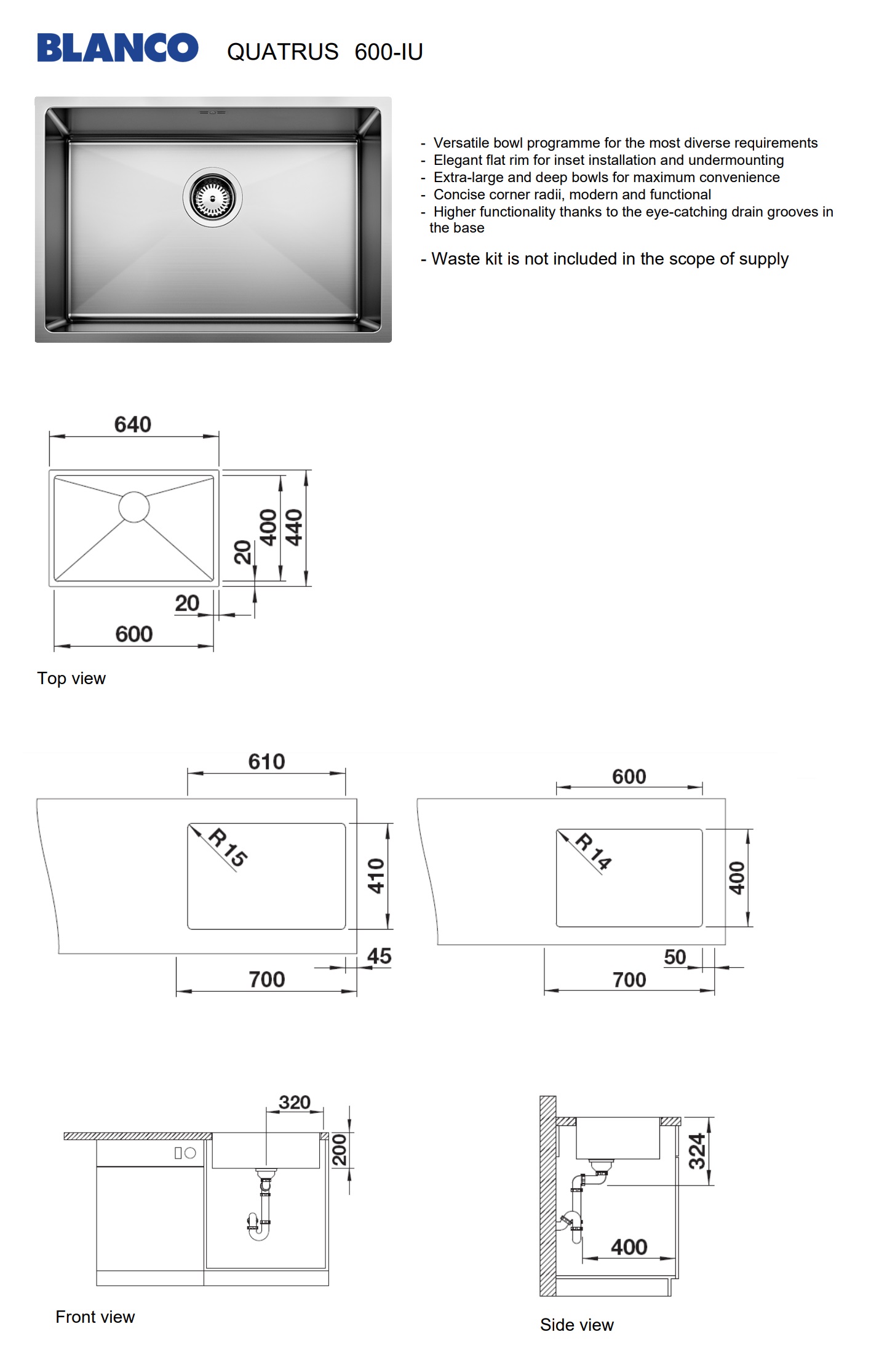 BLANCO Quatrus 600-IU Stainless Steel Under Mount Kitchen Sink. Enquire Our Best Offer.