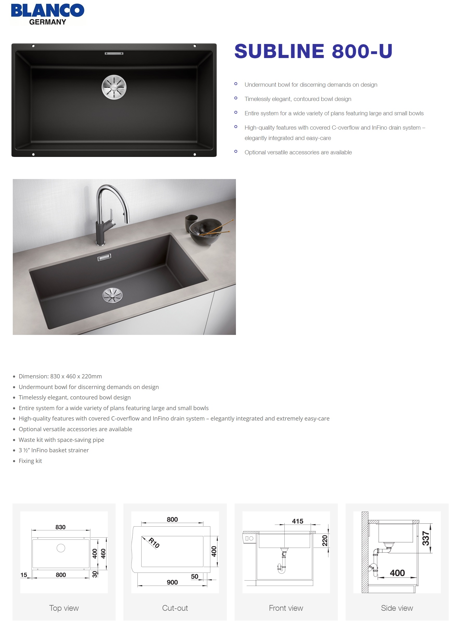 BLANCO SUBLINE 800-U Undermount Sink. Enquire Our Best Offer.