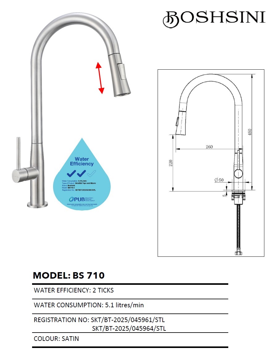 BOSHSINI BS710 Modern & Stylish Kitchen Sink Pull-Out Cold Water Tap