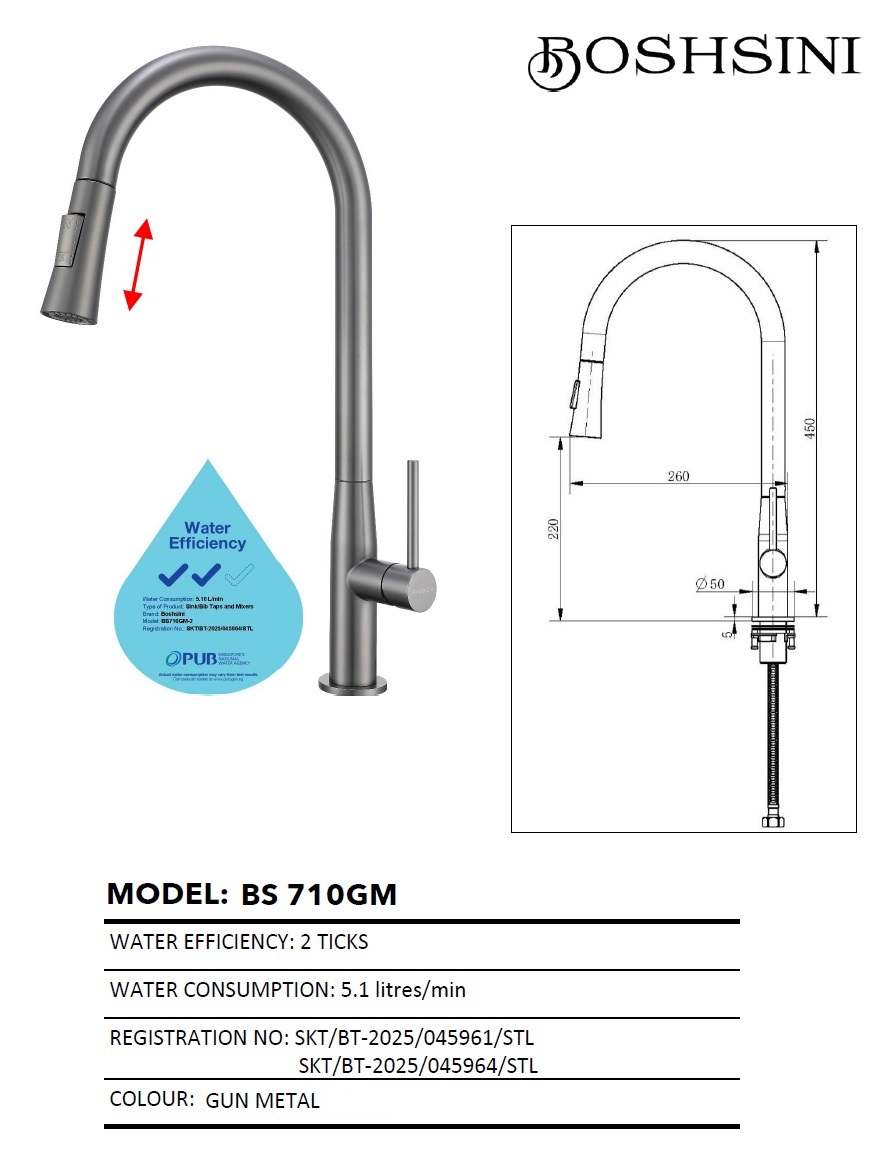BOSHSINI Pull-Out Kitchen Sink Cold Water Tap - BS710 GM