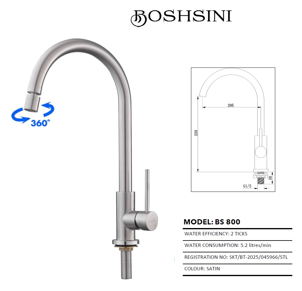 BOSHSINI BS800 Kitchen Sink Cold Water Tap With Swivel Head