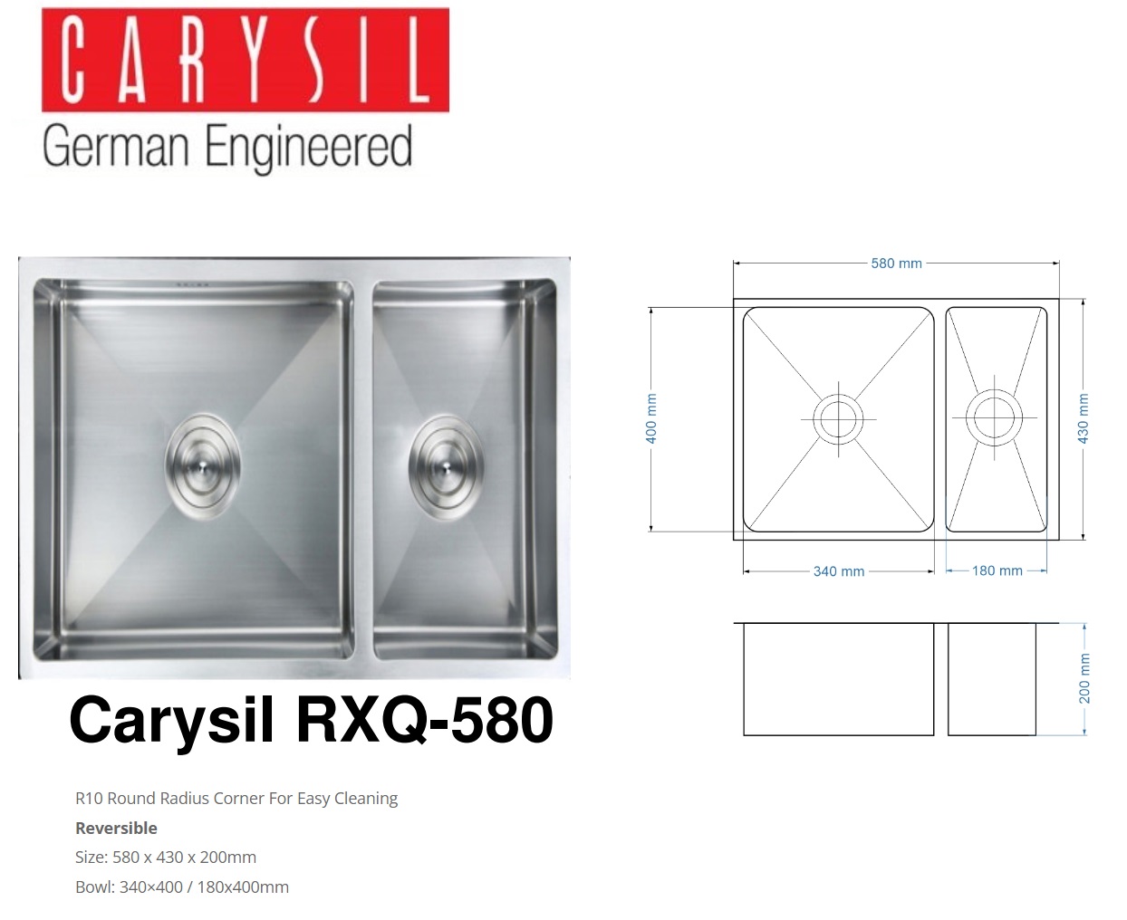 CARYSIL RXQ-580 Stainless Steel Under Mount Kitchen Sink