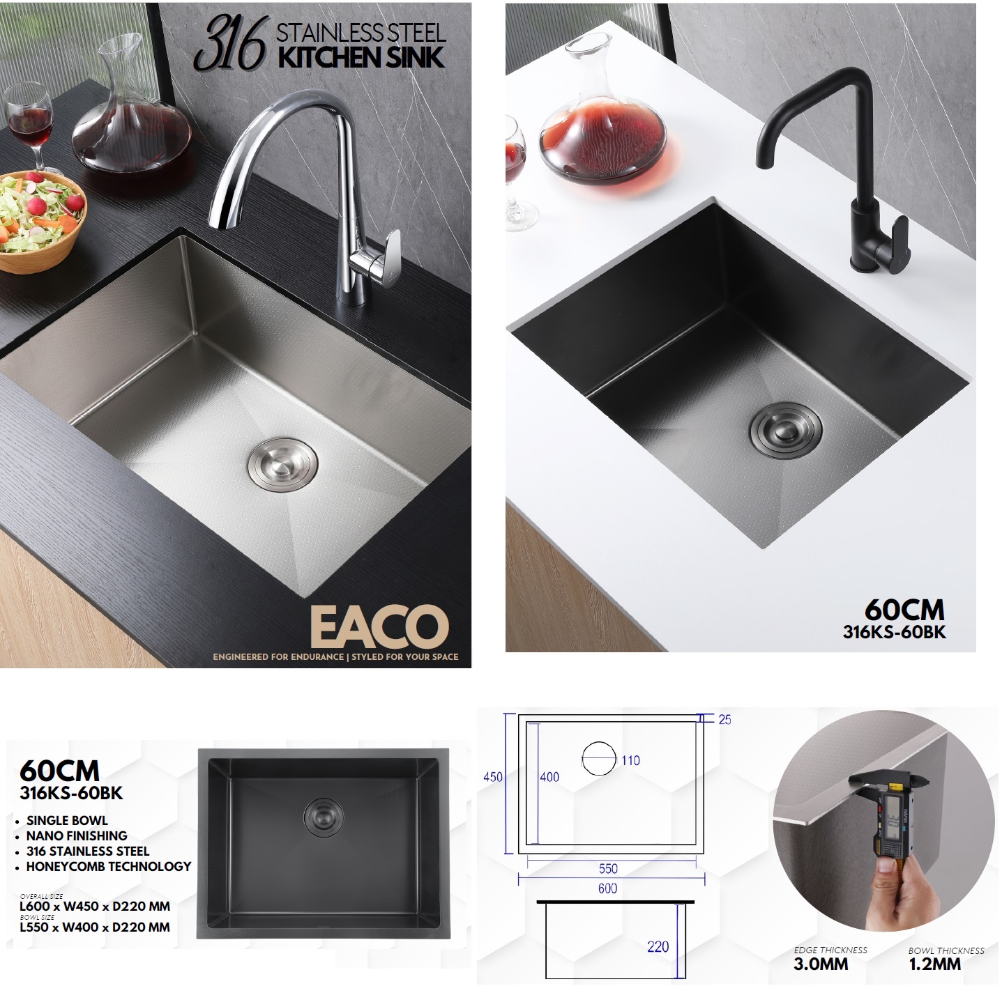 EACO 316 Stainless Steel Nano + Honey Comb Kitchen Sink - Engineered For Endurance