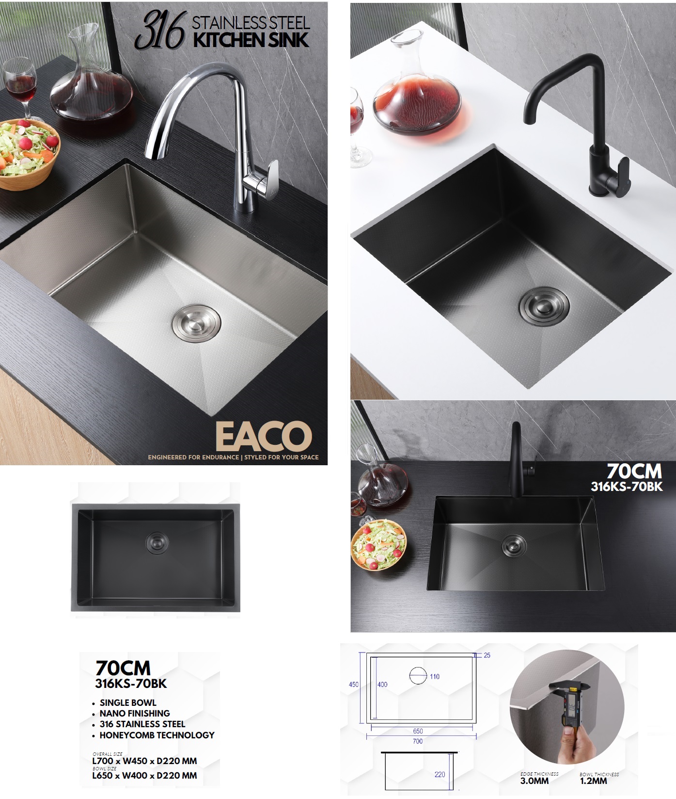EACO 316 Stainless Steel Nano + Honey Comb Kitchen Sink - Engineered For Endurance