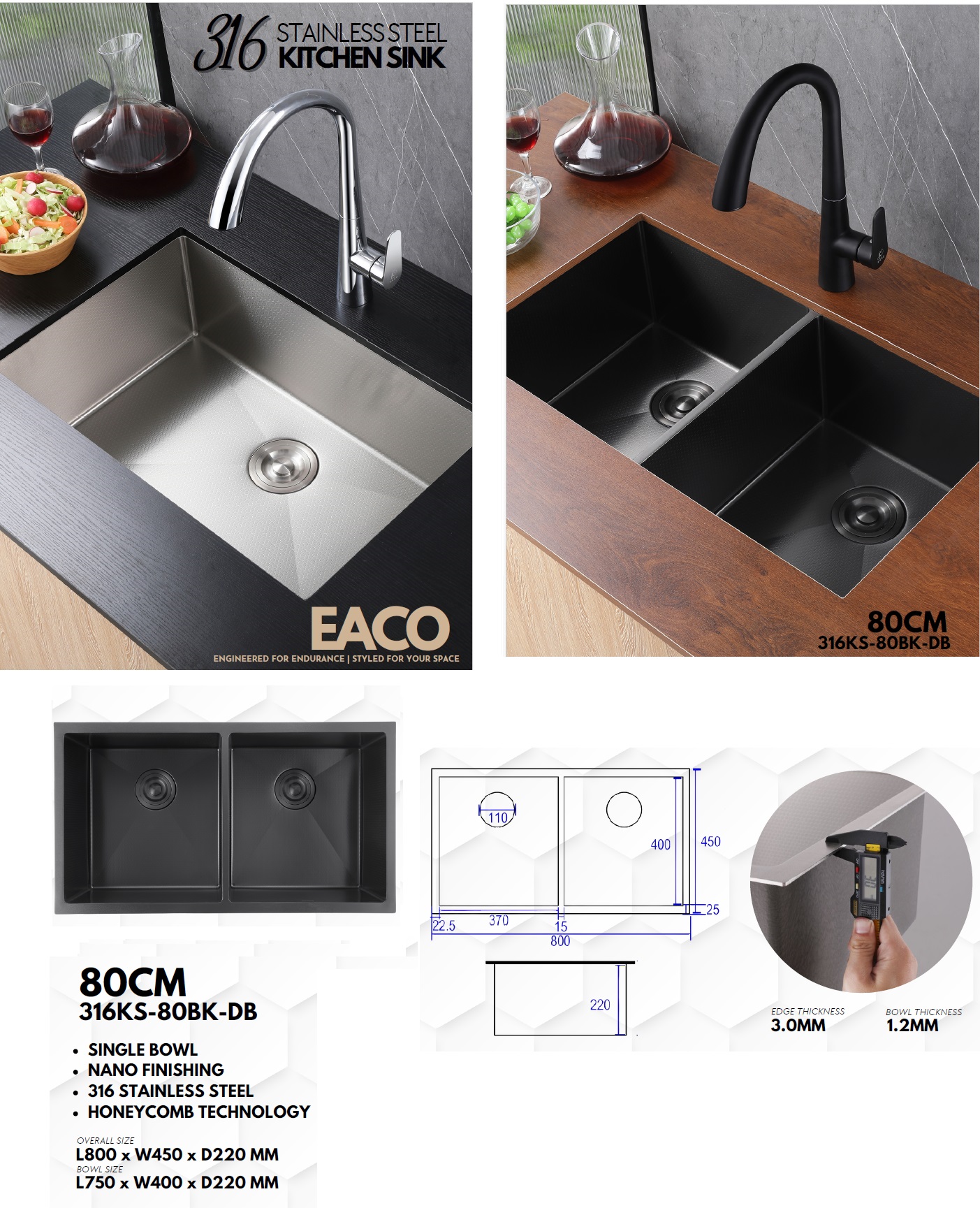 EACO 316 Stainless Steel Nano + Honey Comb Kitchen Sink - Engineered For Endurance