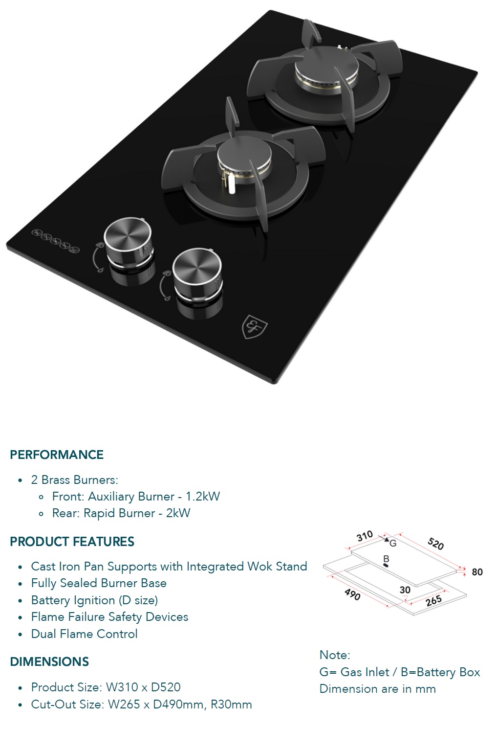 EF 2 Burners Domino Gas Cooker Hob. Come With 2 Years Local Warranty