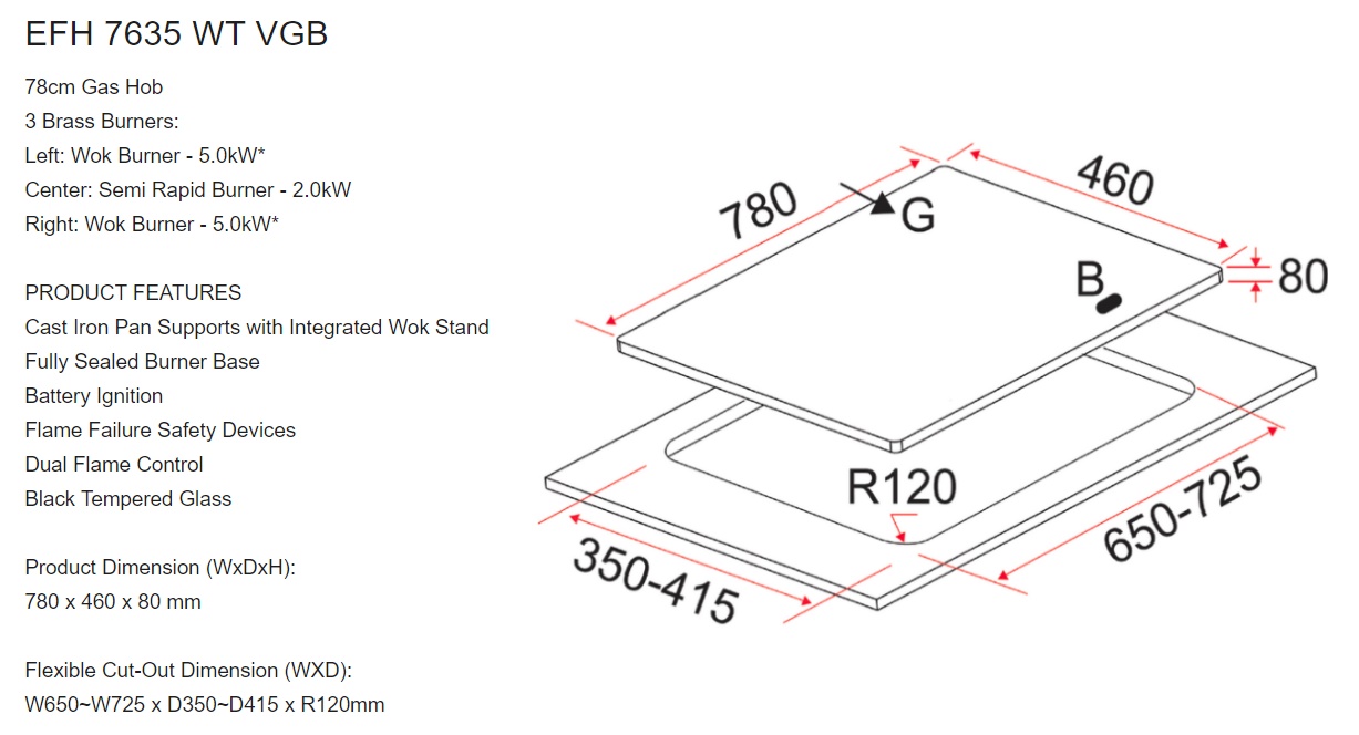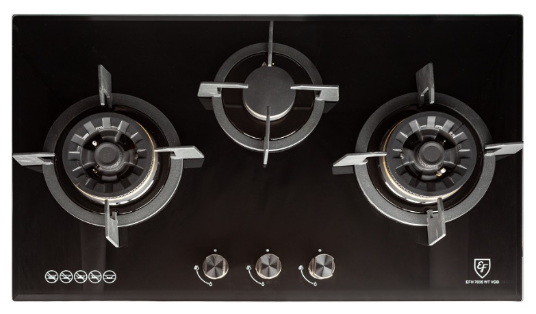 EF Model: EFH 7635WT VGB Tempered Glass 3 Burners Gas Cooker Hob Come With Powerful Triple Rings Burner. Best Offer In Singapore. Come with Free delivery, with No GST Charge.