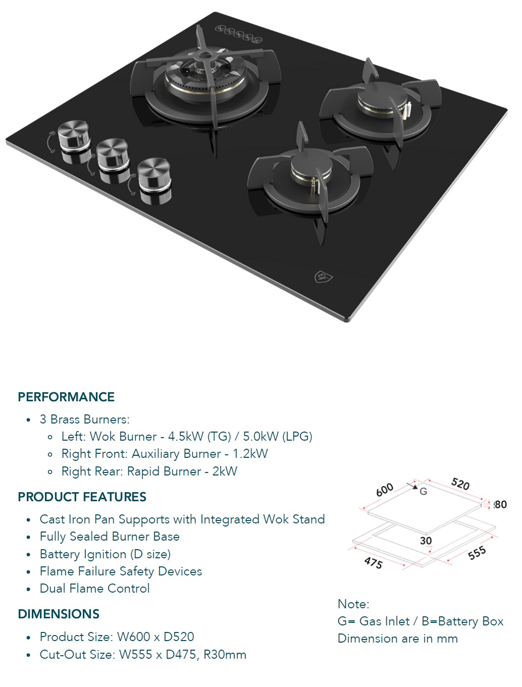 EF 3 Burners Glass Cooker Hob. Come With 2 Years Local Warranty