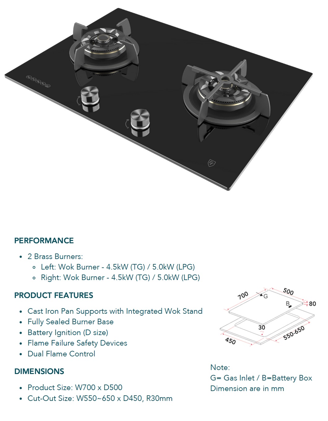 EF 2 Burners Glass Cooker Hob. Come With 2 Years Local Warranty