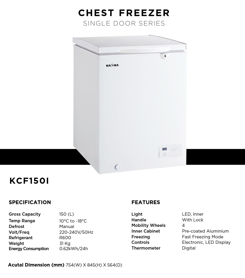 KADEKA Chest Freezer - i-Series - KCF-150i - 150 Litres