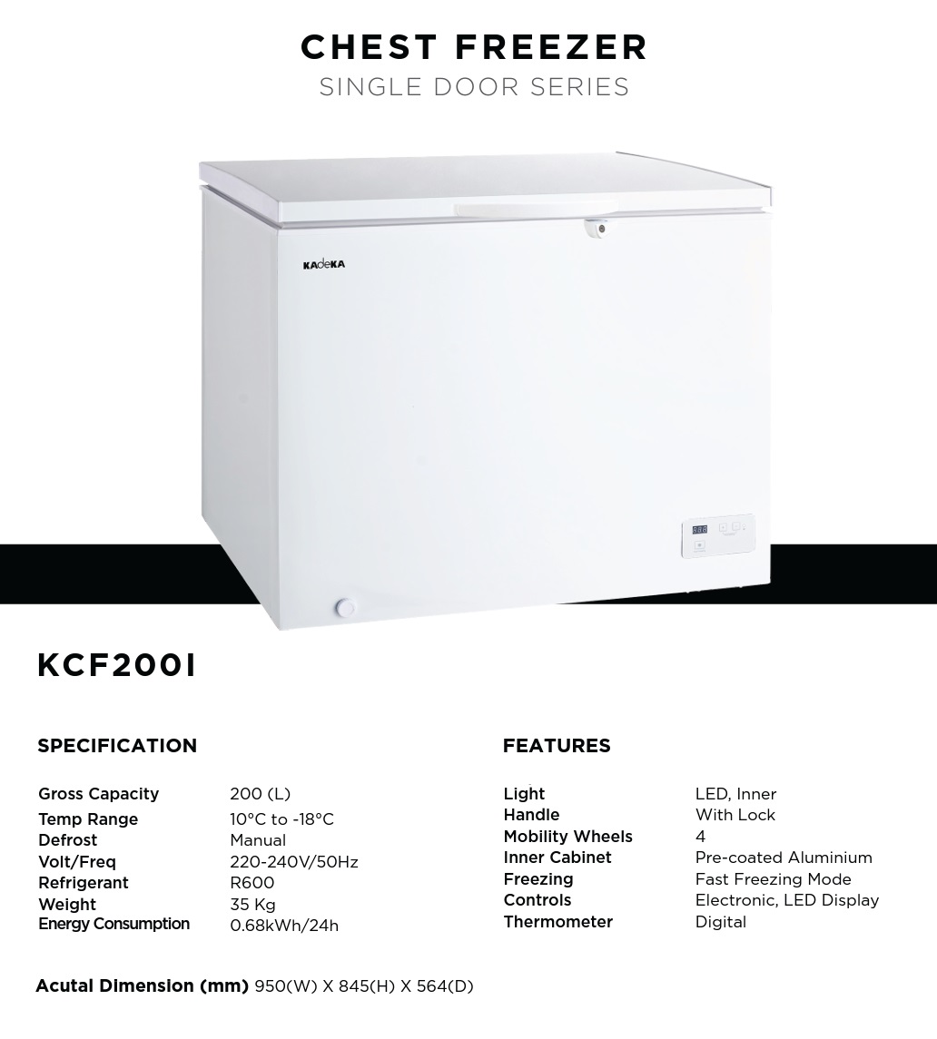KADEKA Chest Freezer - i-Series - KCF-200i - 200 Litres