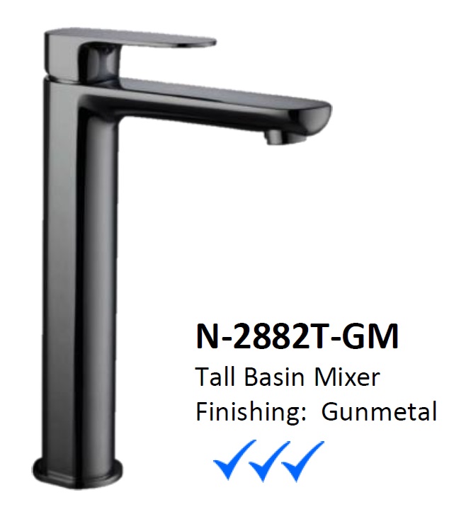 NOBEL N-2882T-GM Tall Basin Mixer Tap - Gun Metal Color