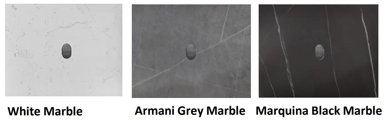 Featured Here The Cabinet Is Dark Marble Color With White Marble Solid Top & Black Basin With Gold Trim