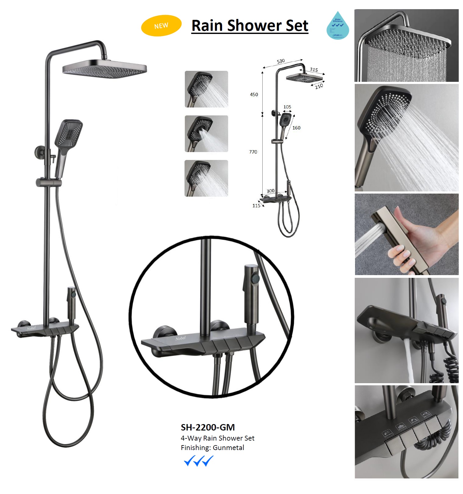NOBEL Rain Multi-Functions Shower Set SH-2200-GM Gun Metal Color