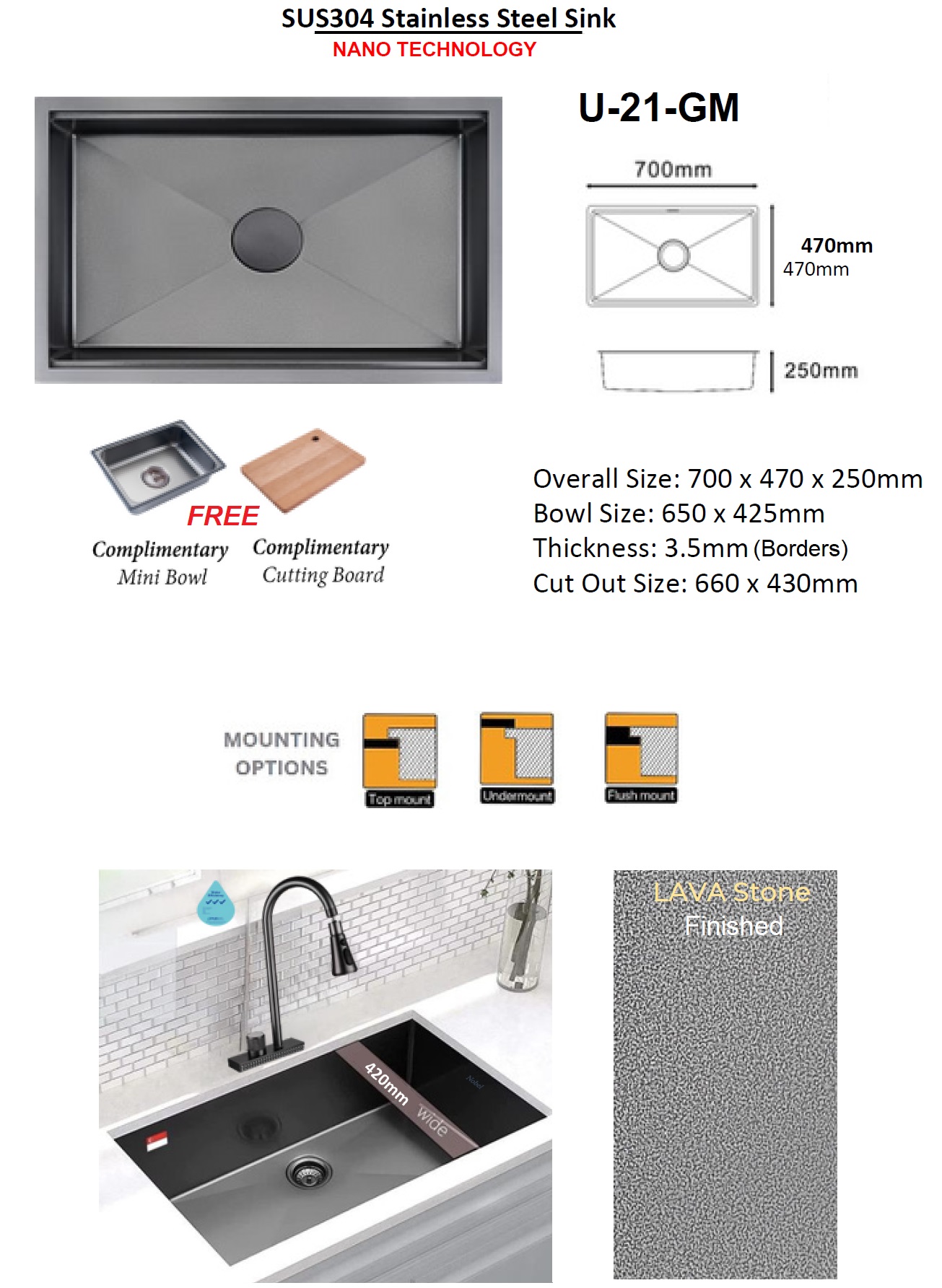 Nobel Under Mount Workstation Kitchen Sink U-21 GM