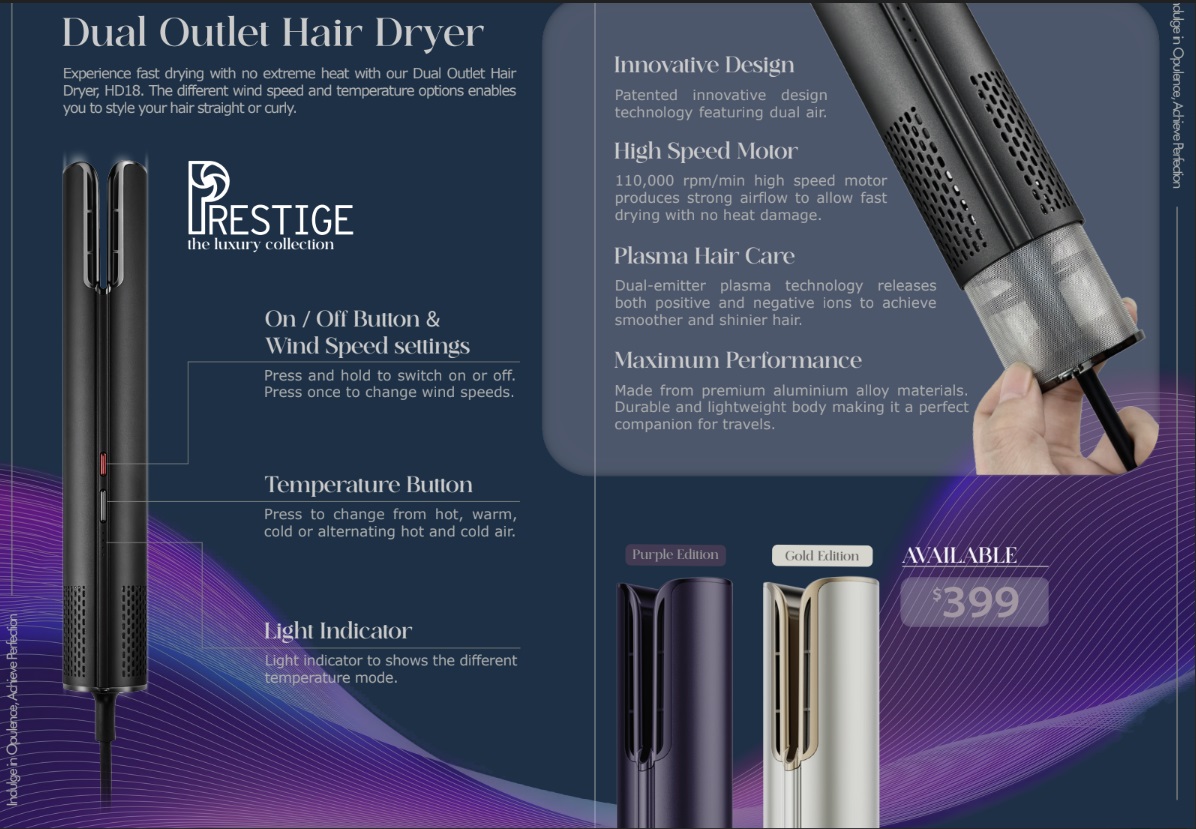 PRESTIGE HD18 Dual Outlet Hair Dryer