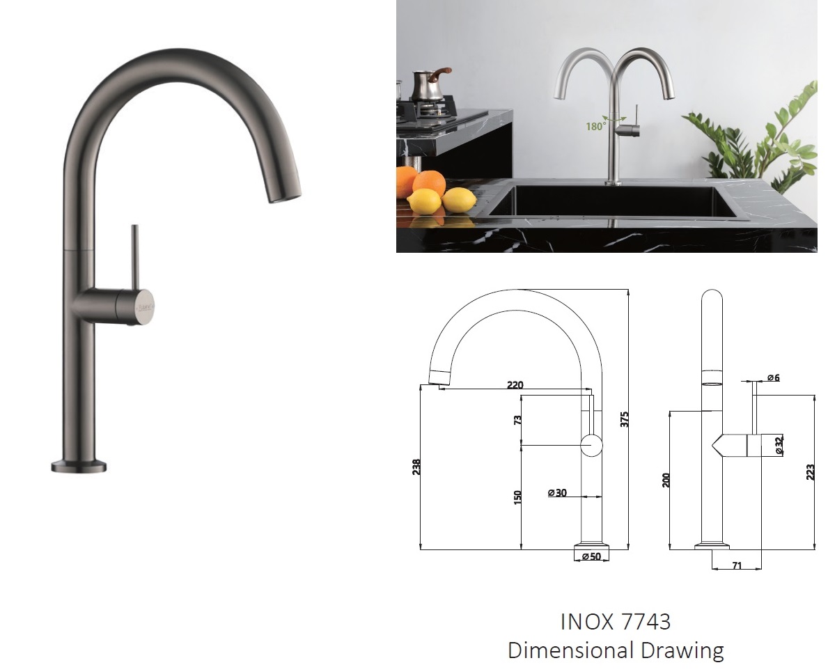 RUBINE Kitchen Sink Tap - INOX 7743-GM
