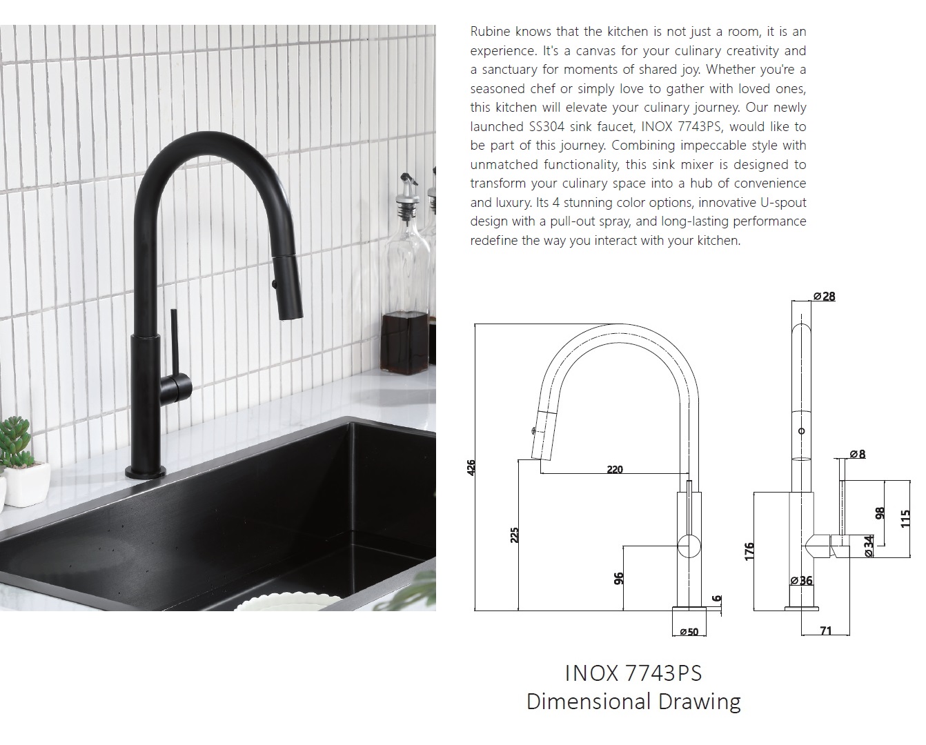 RUBINE Kitchen Sink Tap - INOX 7743PS-BK