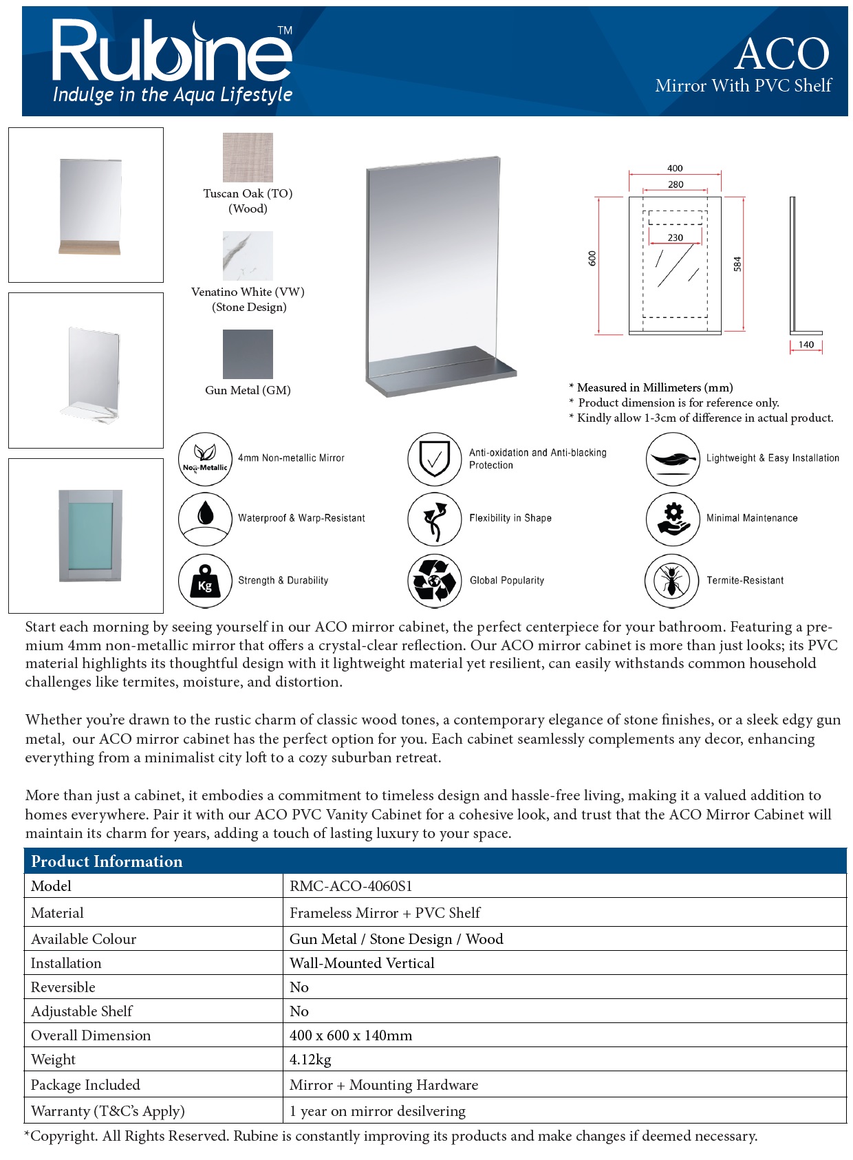 RUBINE PVC Wall Mirror With Shelf RMC-ACO-4060S1